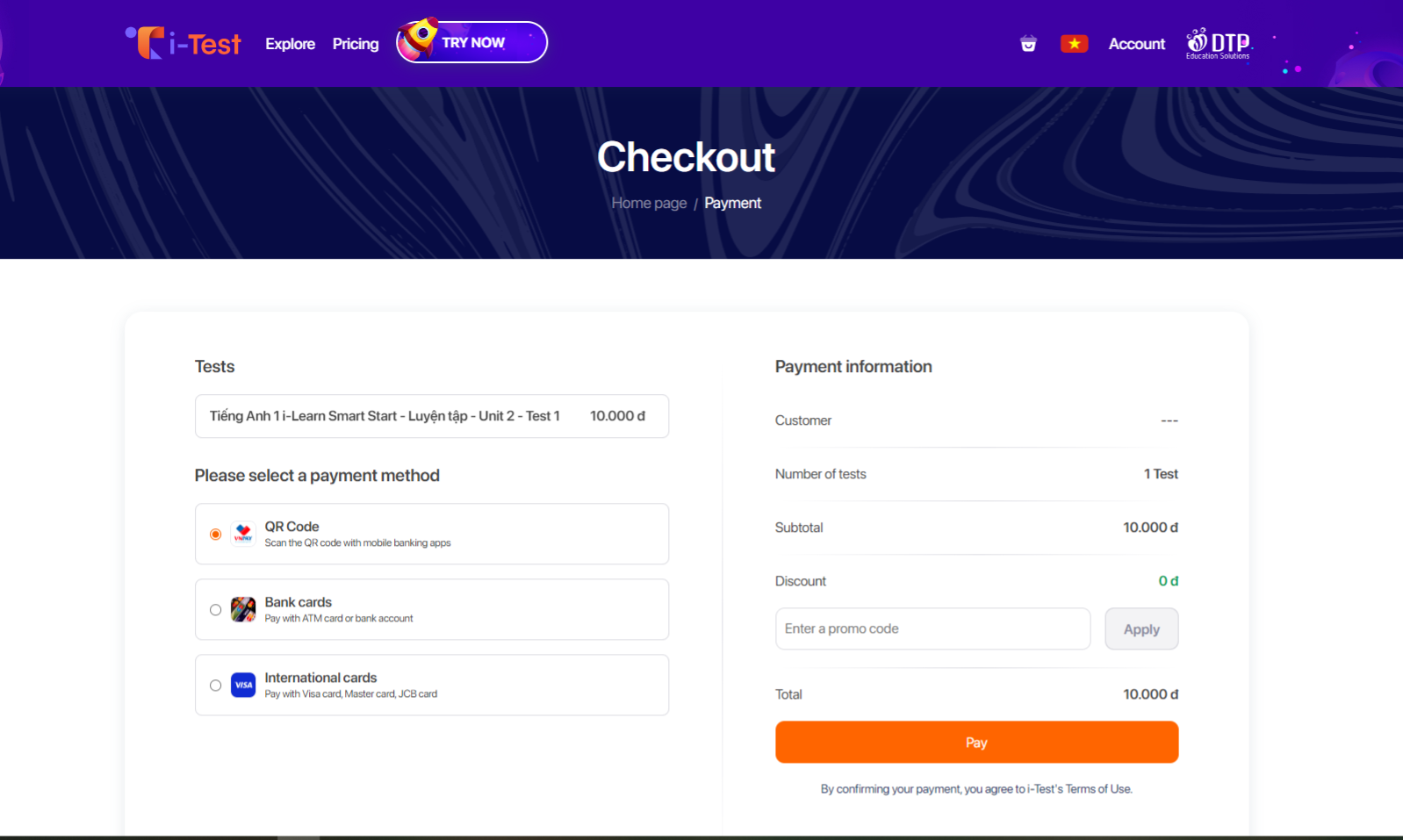 Step 3: Learners will be directed to the payment interface. They need to choose a payment method, and then click “Pay”