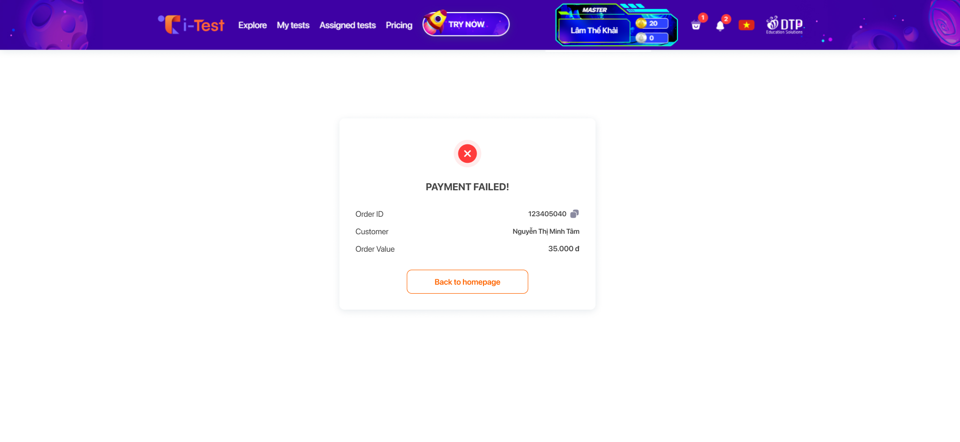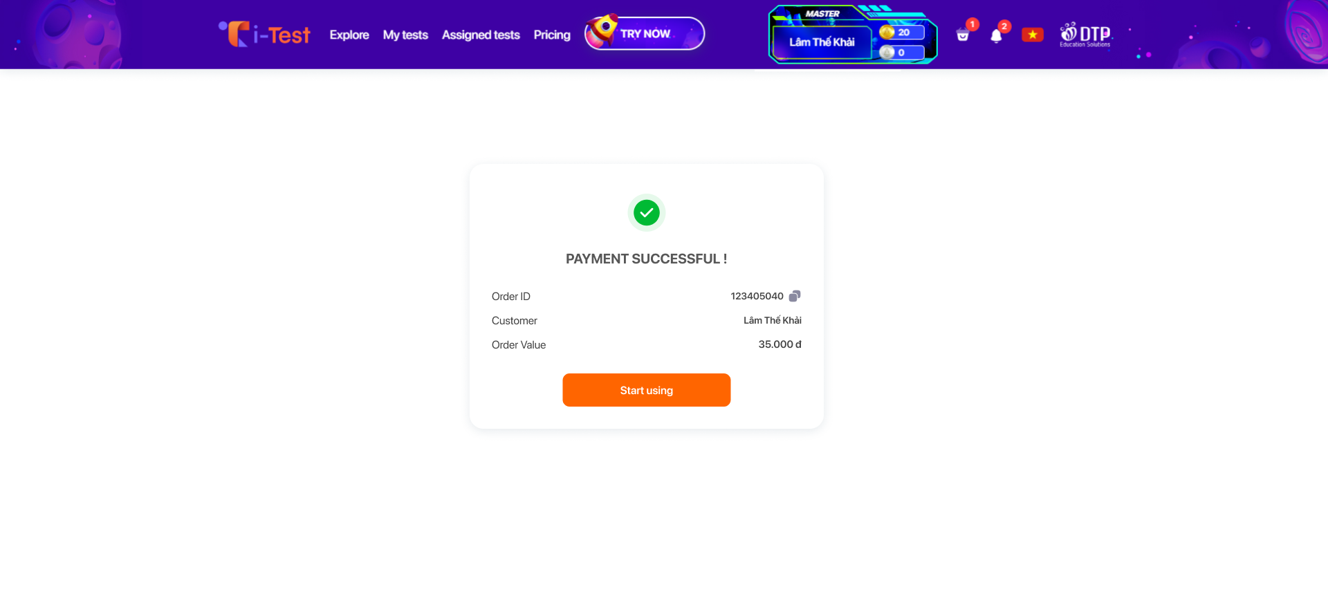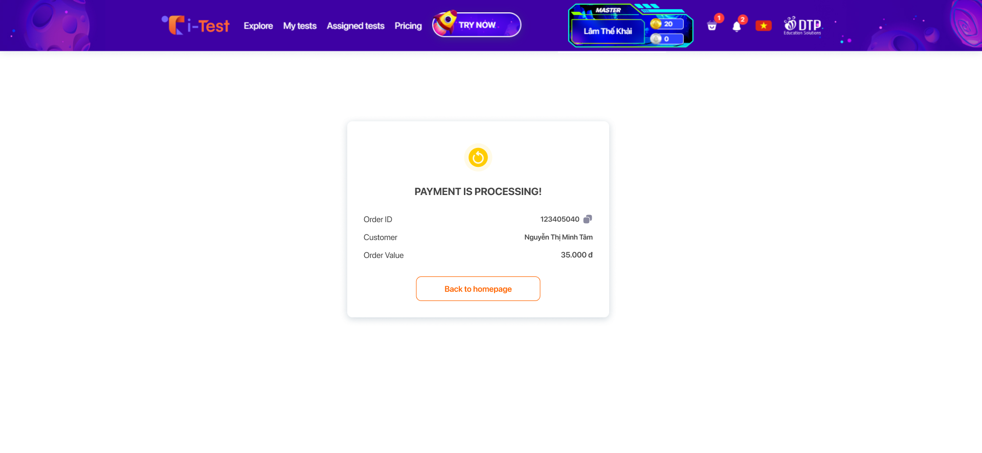 Step 5: Once the payment is completed, the transaction result will be displayed, and the learner will be directed to the home page.
